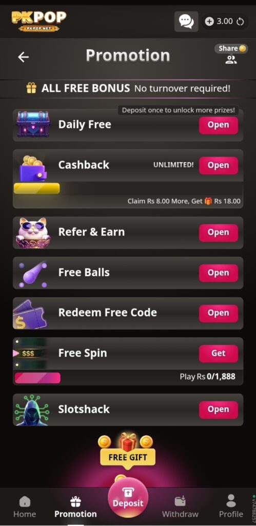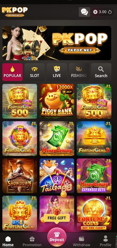 I am presenting another trended app named as PKPOP Game with games like Dragon Tiger, Card Games, Slots, live Casino, Gold mines and much more. Take part in a secure gaming environment and create your identity in game industry. Use JazzCash, Easypaisa for money transactions. Enjoy bonuses, cashback and easy navigation. You can celebrate your small moments with your special persons after withdraw money from this casino platform because it is full of real cash.